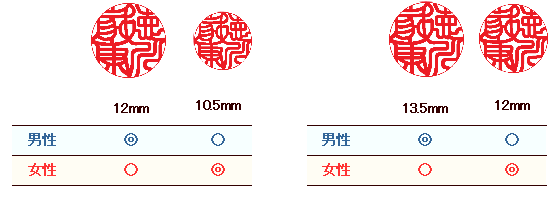 個人印鑑・サイズ一覧